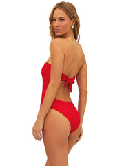 Regular price $168.00 - Liquid error (snippets/product-template line 134): Computation results in '-Infinity'%The Stassia one-piece swimsuit in Red offers a chic and versatile design with a ribbed texture that enhances its modern appeal. Featuring removable and adjustable straps, a tie-back closure, and gripper tape for a secure fit, this swimsuit allows for customizable styling. Removable soft cups provide subtle shaping, while the moderate coverage ensures a refined yet playful look. Perfect for poolside elegance with a contemporary touch.