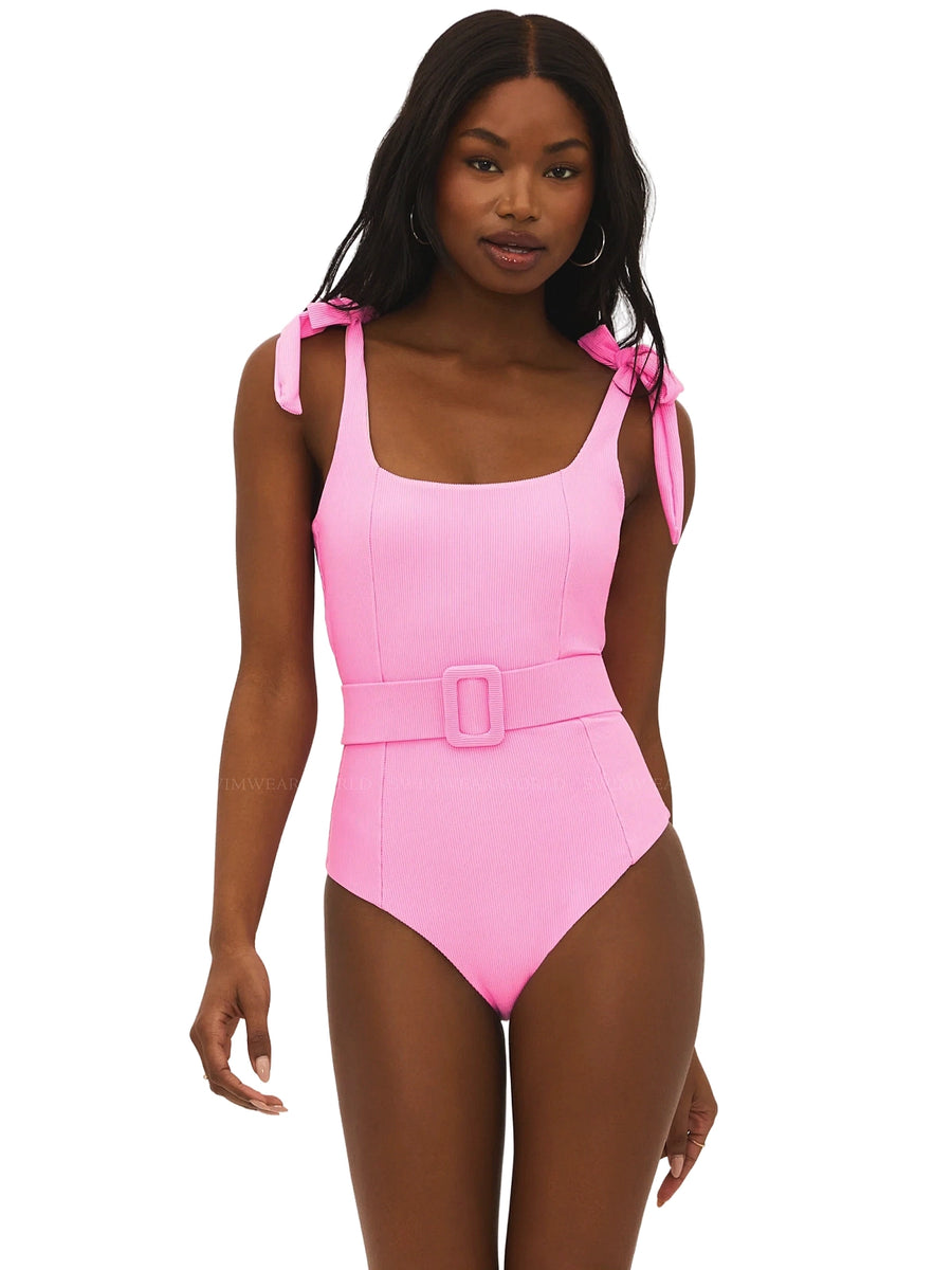 Regular price $168.00The Sydney has a built-in shelf bra with removable bra pads and plush elastic for extra support. With tie shoulder straps and a chic removable belt with a buckle, this style is a standout suit with high leg cuts and cheek coverage. Now in Beach Riot's petal pink scrunch fabric that has sparkly flecks throughout.