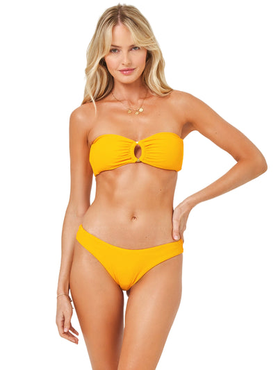 Regular price $110.00 - Liquid error (snippets/product-template line 192): Computation results in '-Infinity'%Check this chic statement by the water with this bandeau bikini top. Featuring a sleek metal ring accent, it offers a modern twist to a classic style. With a tie-back closure and removable pads for customizable comfort, it's the perfect blend of fashion and function for your beach or poolside adventures. These classic-cut bikini bottoms feature thick straps for added comfort and support, making them an essential addition to your swimwear collection. With their timeless design and reliable coverage, they're perfect for all-day beach lounging or active water sports. Pair them with any bikini top for a timeless and flattering look.